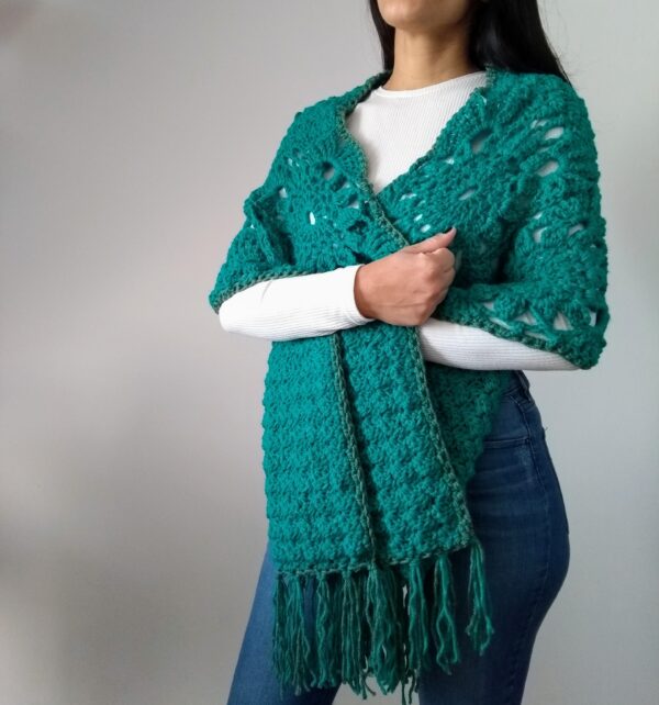 Esta guía se parece mucho a «elige tu propia aventura» porque con una misma estructura vas a poder elegir qué accesorio terminar de tejer: la capa o el chal.